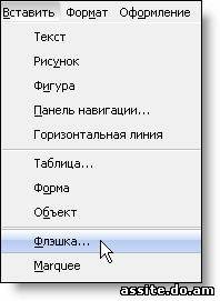 Чтобы добавить флэш ролик (.swf):
