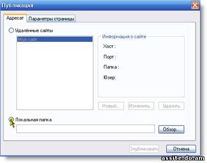2. Нажмите радио-кнопку Локальная папка во вкладке Адресат в окне Публикация .