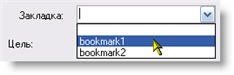 6. Выберите нужную закладку в выпадающем списке Закладка .