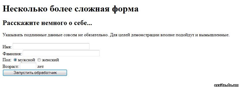 Теперь мы знаем достаточно для того, чтобы написать простейшую форму